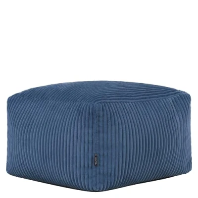 icon Amara Cord Bean Bag Footstool, Denim Blue, Pouffe Footstool with Filling Included, Footrest, Bedroom, Living Room, Room Furniture