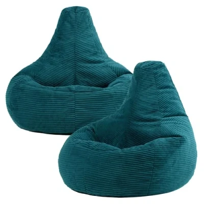 icon Dalton Cord Recliner Bean Bag Set of 2, Teal Green, Large Adult Chair with Filling Included, Comfy Chair, Living Room Furniture, Bedroom Furniture