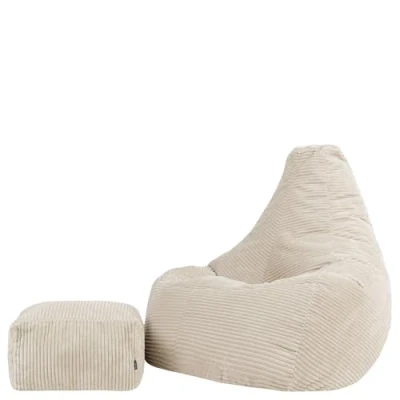 icon Dalton Large Cord Recliner Bean Bag and Footstool, Beige, XXL Adult Chair with Filling Included, Comfy Chair, Living Room Furniture, Bedroom Furniture
