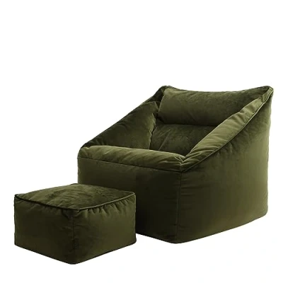 icon Natalia Velvet Lounge Chair Bean Bag and Footstool, Olive, Giant Chair, Large Bags for Adult with Filling Included, Accent Living Room Furniture
