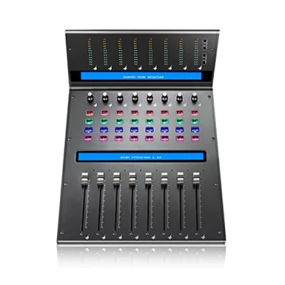 8 touch-sensitive motorized channel faders with 10-bit resolution 8 x Dual function encoder knobs Expandable to 32-channels control surface with 3 units of can Pro XS Presets for protocols, Cubase, Unendow, amplitude, Logic Pro, studio One, Bigwig, Reason and able ton Live 12 segment LED meter Bridge.