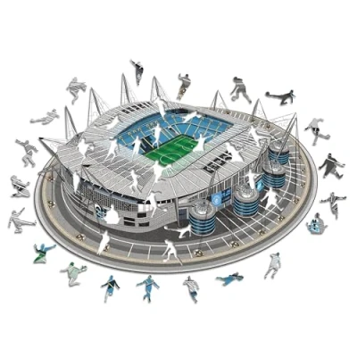 Iconic Puzzles, Manchester City FC Etihad Stadium, 100% eco sustainable wooden puzzle with official license, size S, 150 pieces