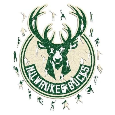 Iconic Puzzles Milwaukee Bucks, Logo, Wooden Puzzle officially licensed NBA, 100% sustainable, size S, 150 Pcs