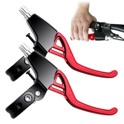 ICOUVA 1 Pair Bicycle Brake Levers,Hand Brakes Universal Cycling Level Handles Handlebar Aluminum Alloy Lever Handle for MTB Mountain Bike Road Red