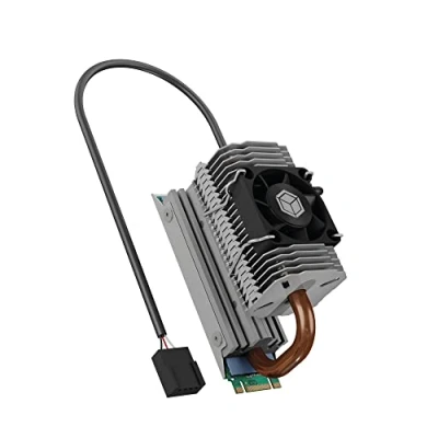 ICY BOX M.2 Heatpipe Cooler with 30 mm Fan Height for SSD (2280), Aluminium, Silver, IB M2HSF 705