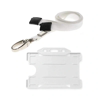 YOU GET: One White Lanyard With Matching Colour Single Sided Card Holders ID CARD LANYARD: High-quality lanyard with a metal lobster clip that secures a ID card holder. Suitable for all workplaces or individual uses BREAKAWAY DESIGN: It has a safety breakaway clip in case the lanyard gets caught in doors or machines. The black clip will release to free the wearer in emergencies COMFORTABLE & DURABLE: The lanyard is made from soft non-irritating nylon, comfortable to wear while being durable and long lasting. Available in 10 colours. The lanyards are 1cm wide and approximately 45cm long ID CARD HOLDER: Colour matching card holder that holds standard sized credit cards (86 x 54mm). Useful for name badges, identification and card keys