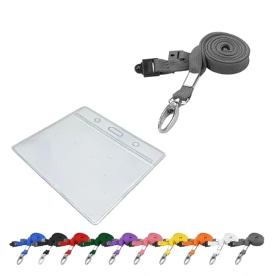 ID Lanyard Neck Strap with Metal Clip and Breakaway Safety & Name Badge Pocket Sleeve, Grey PCL Media ltd