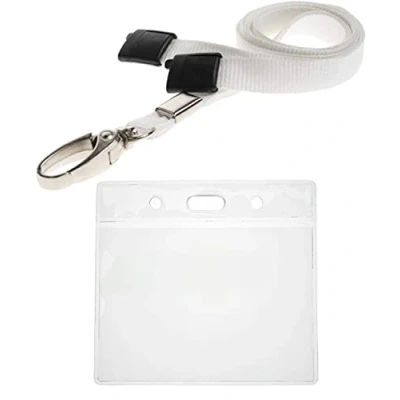 ID Lanyard Neck Strap with Metal Clip and Breakaway Safety & Name Badge Pocket Sleeve, White PCL Media ltd