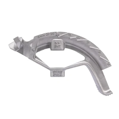 Conduit Bender Head: ideally used to bend iron and metal pipes, the aluminum conduit bender head offers application in electrical repairs and installation to fit pipes around all ceiling, corners, wall, and irregularly shaped passages Precision Bending: the metal pipe bender is equipped with markings that represent star, arrow, degree scale, and rim notch to get perfect bends. The markings are raised and cast into both sides to aid visibility of the users Durable Construction: made with aluminum, the rugged construction of aluminum bender head offers durability to withstand long-term heavy-duty use. Durable Construction: made with aluminum, the rugged construction of the lightweight aluminum bender head offers durability to withstand long-term heavy-duty use and convenient handling Product Specifications: The Aluminum EMT bender is suitable to bend 3/4 in. EMT metal pipes as well as 1/2 in. Rigid & 1/2 in. IMC pipes. It uses industrial standard Benfield bending system for bending.