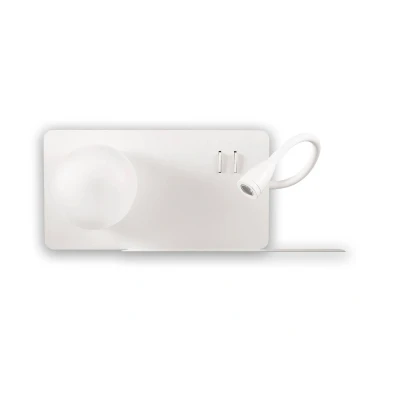 A modern looking fitting which uses the latest technology, this bedside reading lamp is a positive addition to the dor of the room, as well as providing much needed light. The fitting has a G9 lamp, and is also fitted with an LED reading lamp on a flexi-tube for accurate light positioning. The fitting is available in black and white finishes, and left and right facing fittings for both sides of the bed. Complete with two separate switches, and a USB port. The fitting has a handy shelf built underneath, which can be used to place a charging device on. Class one. IP20.