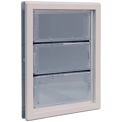 Durable, low-maintece, energy-efficient pet door with inner telescoping frame Made from strong, impact-resistant ABS thermoplastic with a clear, weather-resistant LEXAN flap For dogs and cats up to 90 pounds. Note: Use a clean rag and fresh water to remove any dirt and grime that may accumulate on the flap panel surface. DO NOT USE strong detergents, pine or lemon oil or any type of solvents as these will permanently damage the flap panels and flexible hinges Installs easily and securely in minutes Flap Size - 10 1/4" x 15 3/4"