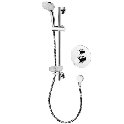 Ideal Easybox A5958AA Concept Easybox Slim thermostatic shower mixer, has been designed to fit into a 43mm wall cavity whilst being quick and easy to install. In addition to the very slim depth, of particular importance for a built-in mixer is the superior water tightness achieved using double sealing throughout. Available as a shower or bath shower mixer, with either a round or square faceplate, it is the perfect choice for your bathroom. Double sealing for superior water tightness. Idealrain M3 100mm 3 function handspray with 1.35m hose. Chrome plated metal faceplate with clear colour markings. Ceramic Disc flow controlFits into A 43mm wall cavityMultiple fixing optionsSafety stop button at 40°CRound or Square versionsAvailable as mixer onlyShower hose retainerTMV2Removable 8 LPM Eco flow regulator fitted in the shower handspray Genuine brand new Ideal Standard product, covered by a Ideal Standard manufacturer's guarantee.