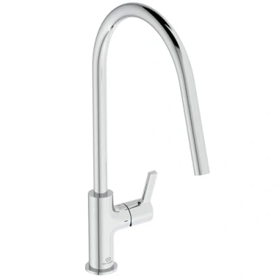 Ideal Standard Gusto Kitchen tap, High spout with Round Design, FirmaFlow Cartridge, Low Pressure, 360 Swivel spout, Easy to Install EasyFix+ Fixation, smartshine Finish, Chrome
