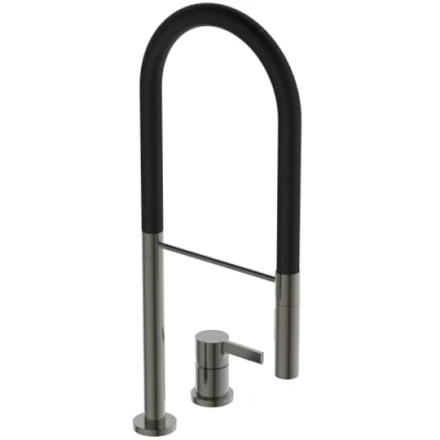 Ideal Standard Gusto, Professional Single Lever Mixer for Two Hole Kitchen Sink, Tubular high spout with Adjustable and Removable Hand Shower, Magnetic Grey