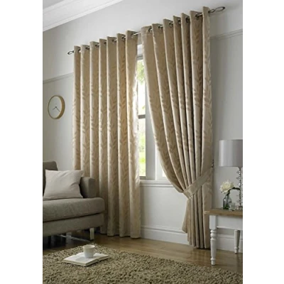 Ideal Textiles Tivoli, Latte Lined Curtains, Trailing Leave Floral Jacquard Design, Eyelet Curtain Pairs, 66" x 72"