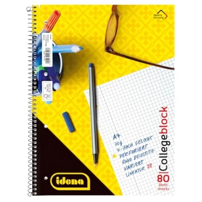 Perforated pages, 4-hole punched and with double-sided margin, 80 sheets In DIN A4 format With a weight of 70 g/m² Line style 28 squared Paper from sustainably managed forests in FSC mix quality