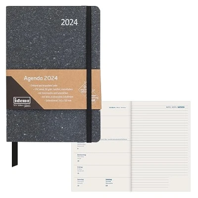 Idena 11068 2024 Diary DIN A5 176 Pages Grey 1 Week on Page Agenda Weekly Planner Recycled Leather Cover