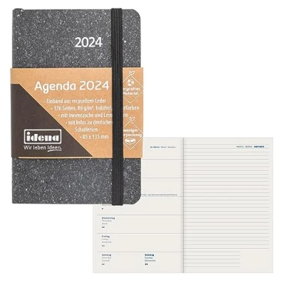 Idena 11070 Diary 2024, 85 x 135 mm, Grey, 176 Pages, 1 Week on Page, Agenda, Weekly Planner, Recycled Leather Cover