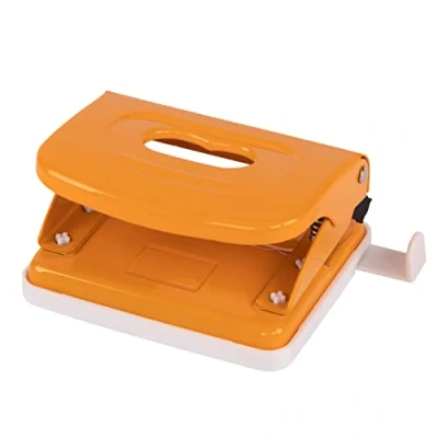Practical and handy metal hole punch In orange colour Holds up to 20 sheets of paper With easy-to-read format display on the stop rail The base can be emptied after use