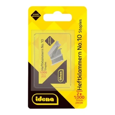 The staples of size no. 10 (10/5) are for staplers of size no. 10 suitable. The galvanised metal staples are robust and rust-proof. Up to 20 sheets of paper can be held securely and permanently together with the help of the stapler needles. Discover our wide range of products in the Idena brand store. Click on the brand name Idena below the product title. The stock of 2,000 staples is stored in the sliding boxes and is quickly at hand.