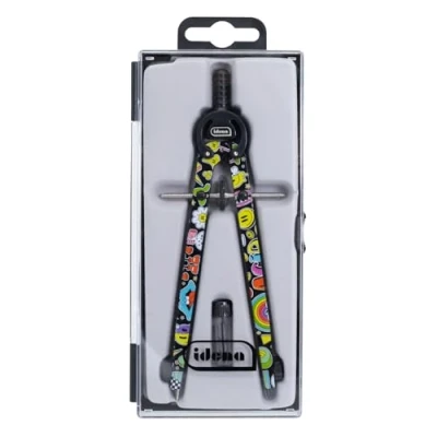 The compass in the design "Comic" has a fine adjustment function thanks to a centre drive wheel that allows precise circles without slipping With a maximum radius of 19.5 cm, the quick adjustment compass is suitable for a variety of drawings and projects Includes two refills in a handy tin that can be easily replaced Made from durable metal and plastic, the compass offers durability and stability The compass comes in a sturdy plastic case that ensures safe protection and easy storage