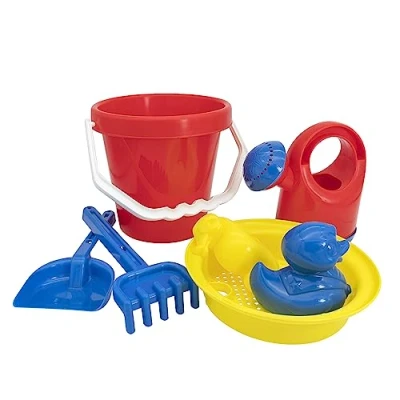 7-piece set of colourful toys for the sandpit and the beach, children can build sand castles, bake sand cakes, dig caves, sevens, digging and muddling Sandpit toy contains bucket with sieve lid, 2 sand moulds, watering can, children's shovel, rake and hand sieve (2 different Colour variations, selection not possible) All parts are made of safe and robust plastic, making them durable, easy to carry and easy to clean with water after playing Suitable from 18 months: the size of the individual parts is optimally adapted to small hands, playing with sand and water promotes children's creativity and imagination and trains coordination and motor skills Endless fun and varied leisure activity in the home garden or holiday, in kindergarten and with friends on the playground, Manufacturer: Iden Berlin