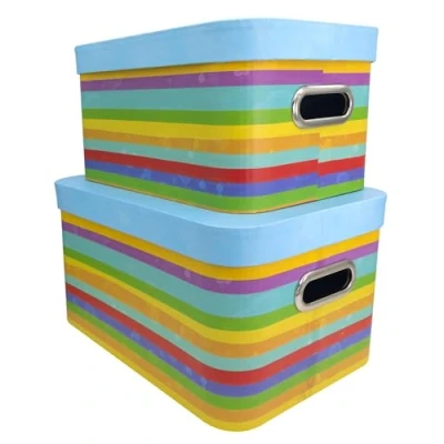 Idena 50067 Gift Box with Lid and Metal Handles, 2 Pieces in Various Sizes, Boxes Colourful Stripes