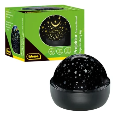 Idena 50145 LED Starry Sky Spotlight, Lights in White, Blue and Yellow, Projector with 2 Modes, for Indoors, Battery Operated, Approx. 16.2 x 13 cm