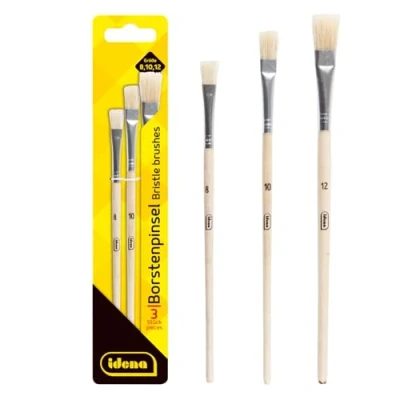 Bristle brushes in sizes 8, 10 & 12 Ideal for school, study, work and leisure Made from FSC 100% Bristles attached to the wooden handle with an aluminium ferrule Discover our diverse product range in the Idena brand store. Click on the brand name Idena below the product title