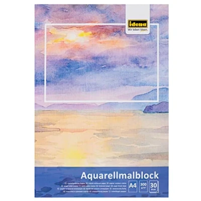 Idena 68162 Watercolour Pad A4 with 30 Sheets Cream Thick Paper 300 g/m² Drawing for Watercolours &