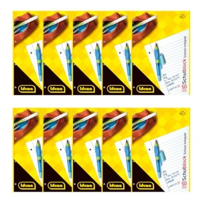 Idena 90387 A4 Lined Notepad, Pack of 10, School Pad with 50 Sheets and Double Margin, 70 g/m² Paper, 4 Hole Punched Glued at the Top