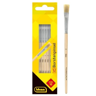 Bristle brush set with 12 brushes in size 12 With natural wood shaft, FSC100% The bristles are attached to the wooden handle with an aluminium ferrule The size information can be read on the wooden handle Ideal for school, study, work and leisure, Weight: 0.1212542441 Pounds, Manufacturer: Idena