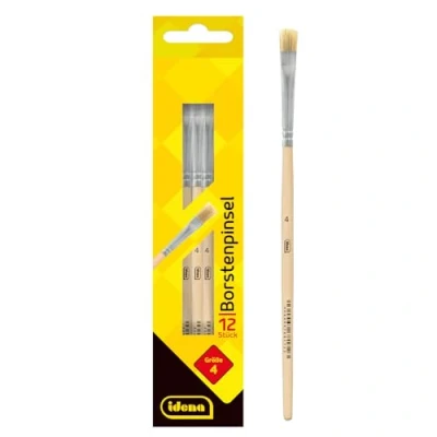 Bristle brush set with 12 brushes in size 4 With natural wooden shaft, FSC100% The bristles are attached to the wooden handle with an aluminium ferrule The size specification can be read on the wooden handle Ideal for school, study, work and leisure, Weight: 0.07054792384 pounds, Manufacturer: Idena