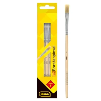 Bristle brush set with 12 brushes in size 8 With natural wooden shaft, FSC100% The bristles are attached to the wooden handle with an aluminium ferrule The size specification can be read on the wooden handle Ideal for school, study, work and leisure, Weight: 0.0881849048 Pounds, Manufacturer: Idena
