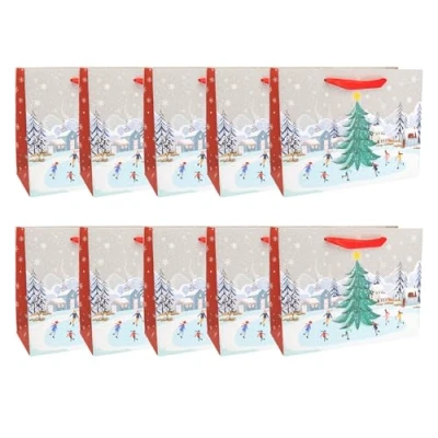 With the colourfully designed gift bags, your gifts are packed quickly and nicely Included are 10 bags with a winter environment Each gift bag has a size of approx. 26 x 20 x 11 cm High stability thanks to a base and comfortable to wear thanks to two carrying straps The sustainable gift bags made from certified FSC mix paper can be reused and given as a gift
