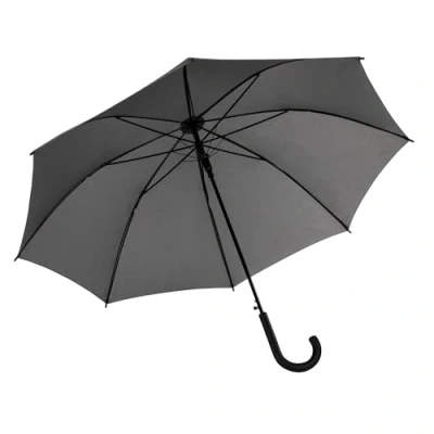 The umbrella has a diameter of 100 cm and offers 2 people optimal protection from rain Made from grey 190T ponge polyester, which is durable and long lasting Equipped with 8 metal and fibreglass ribs, the umbrella provides extra stability and resilience in windy weather Thanks to the automatic opening function, the umbrella can be opened quickly and easily with the touch of a button The curved soft-touch plastic handle ensures a pleasant holding feeling and sits comfortably in the hand