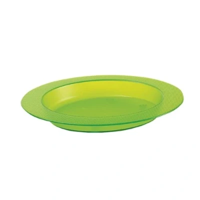Colour: green / stackable, convenient to store Easy to grip non-slip edges / 24.5 cm total dia / 18.3 cm internal dia High and straight edges for one-handed eating Material is more scratch and impact resistant, even when the plate falls on tiles Angled bottom allows liquid and semi-liquid foods to concentrate on one side of the plate