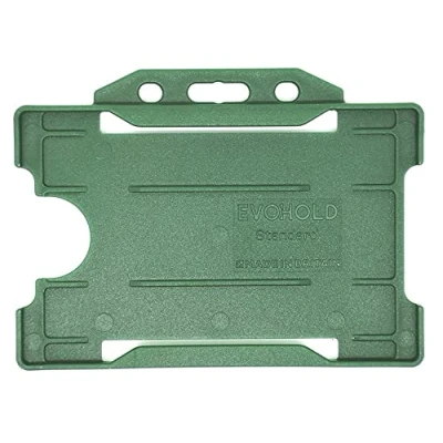 Identity Plus: Dark Green Rigid Open Faced Landscape ID Card Badge Pass Holder (100)
