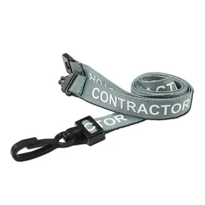 Identity Plus: Grey Pre Printed Contractor Lanyard Strong Plastic J Clip & Safety Breakaway Point (25)