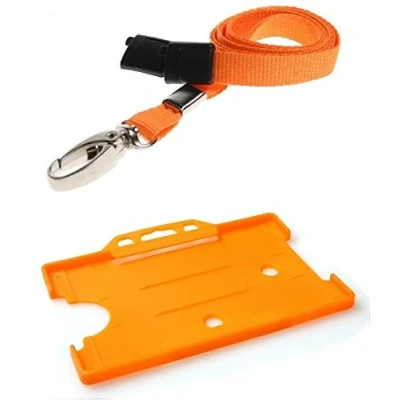 Identity Plus: Orange Lobster Clip Safety Breakaway Lanyard with Landscape ID Card Holder (50)