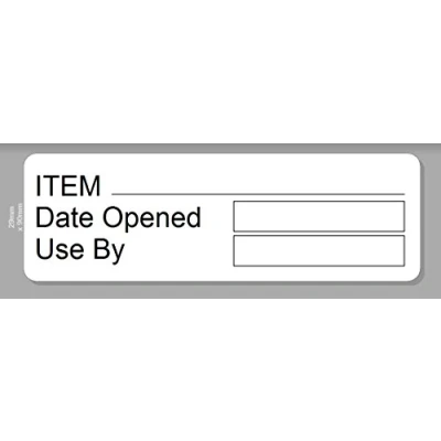 Identity Plus: Pre Printed Self Adhesive Food Labels Date Opened & USE by (25)