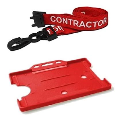 Identity Plus: Red Pre Printed Contractor Lanyard (Plastic J Clip, Safety Breakaway Point) with Landscape Card Holder (25)