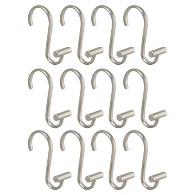 Set of 12 shower curtain or shower liner hooks Modern, clean design Great for shower curtains, shower liners, blackout curtains and more Made of steel with rust-proof satin finish 2.5 cm x 4.5 cm x 7 cm