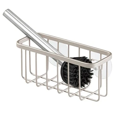 This kitchen caddy organiser is ideal for keeping the sink-clutter free and clean; the caddy keeps the items out of the sink and stored neatly The caddy is a versatile item and can be used as a sponge holder, a dish brush holder or a dish soap holder; it is an ideal sink accessory The metal sink caddy is easy to attach to surfaces; it attaches to the side of the sink or to smooth surfaces via built-in suction cups on the back The washing up caddy is measured at 14.6 x 5.7 x 6.4 cm; it is the ideal size for any kitchen sink and fits in neatly The sink tidy is made of a durable, long-lasting and stainless-coated metal that won't damage quickly; it is available in a matte silver shade