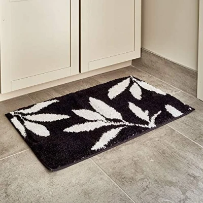 iDesign 86 x 53 cm 1 Piece Leaves Rug, Black/ White