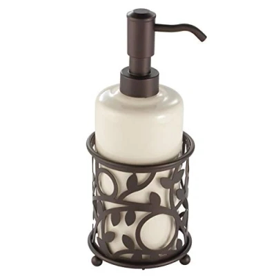 Refillable dispenser holds up to 384 ml Elegant, organic design Easy-to-clean removable insert Made of durable steel with rust-resistant bronze coating and ceramic insert 9 cm diameter x 22.25 cm