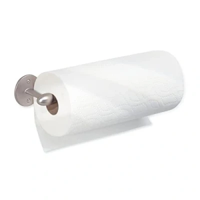 iDesign 9331 Kitchen Roll Holder Wall Mounted, Practical Metal Paper Towel for or Cabinet, Versatile Under Sink Storage, Matte Silver
