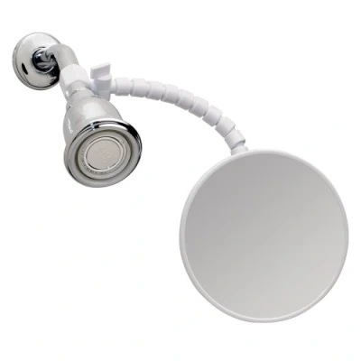 FOG RESISTANT SHOWER MIRROR - water flows to back of mirror, heats mirror and fog disappears FLEXIBLE ARM - position mirror as needed EASY TO INSTALL and fits standard plumbing Made of durable plastic 5 cm x 26 cm x 16.5 cm