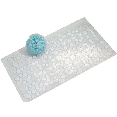 Polished and textured pebbles Generous size to cover where you step Suction cups on bottom help keep mat firmly in place Available in three fashion colors Provides protection against slippage