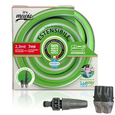 Idroeasy 2700E Tubo da giardino 7m Extendable Garden Hose, Green